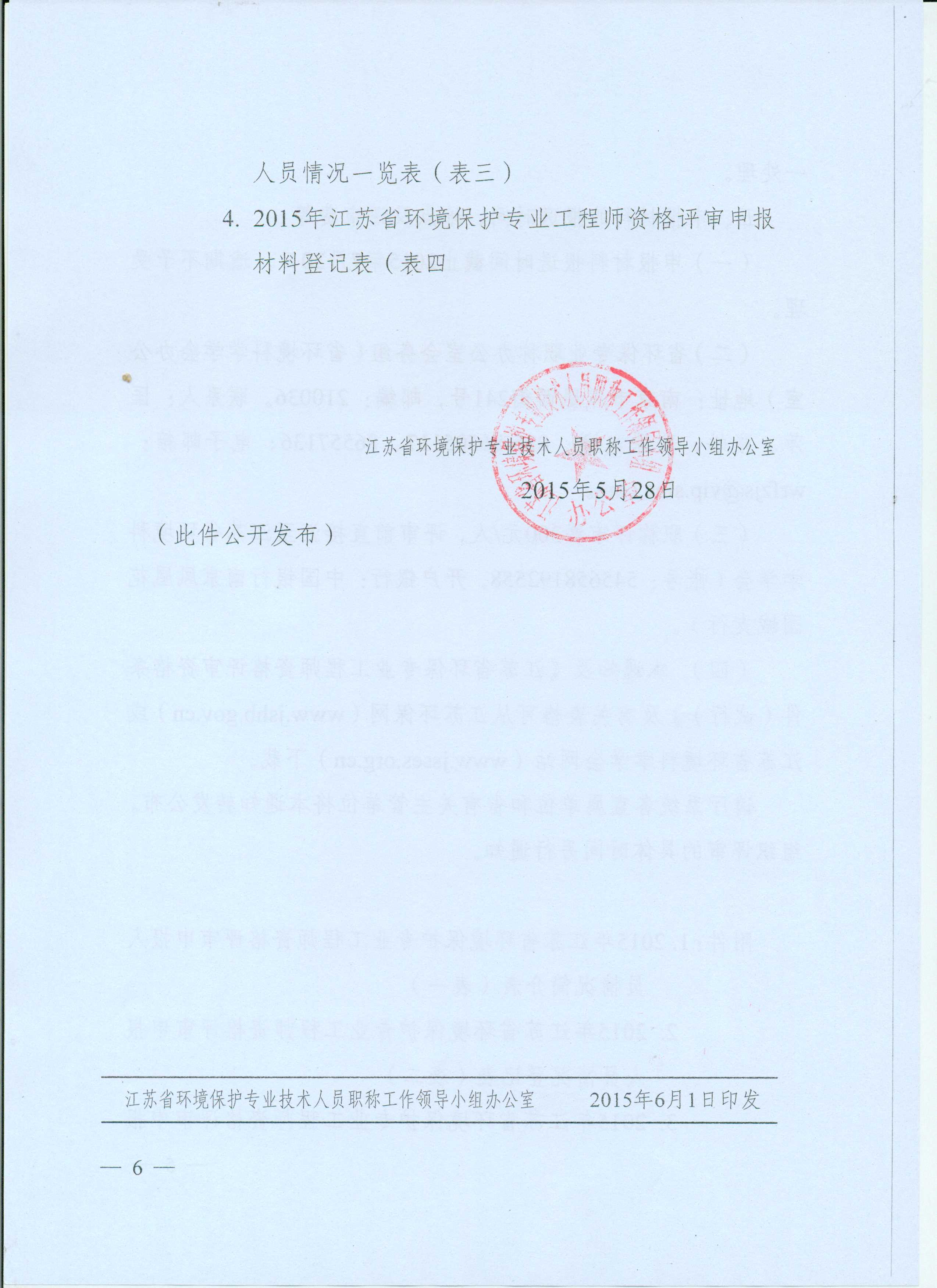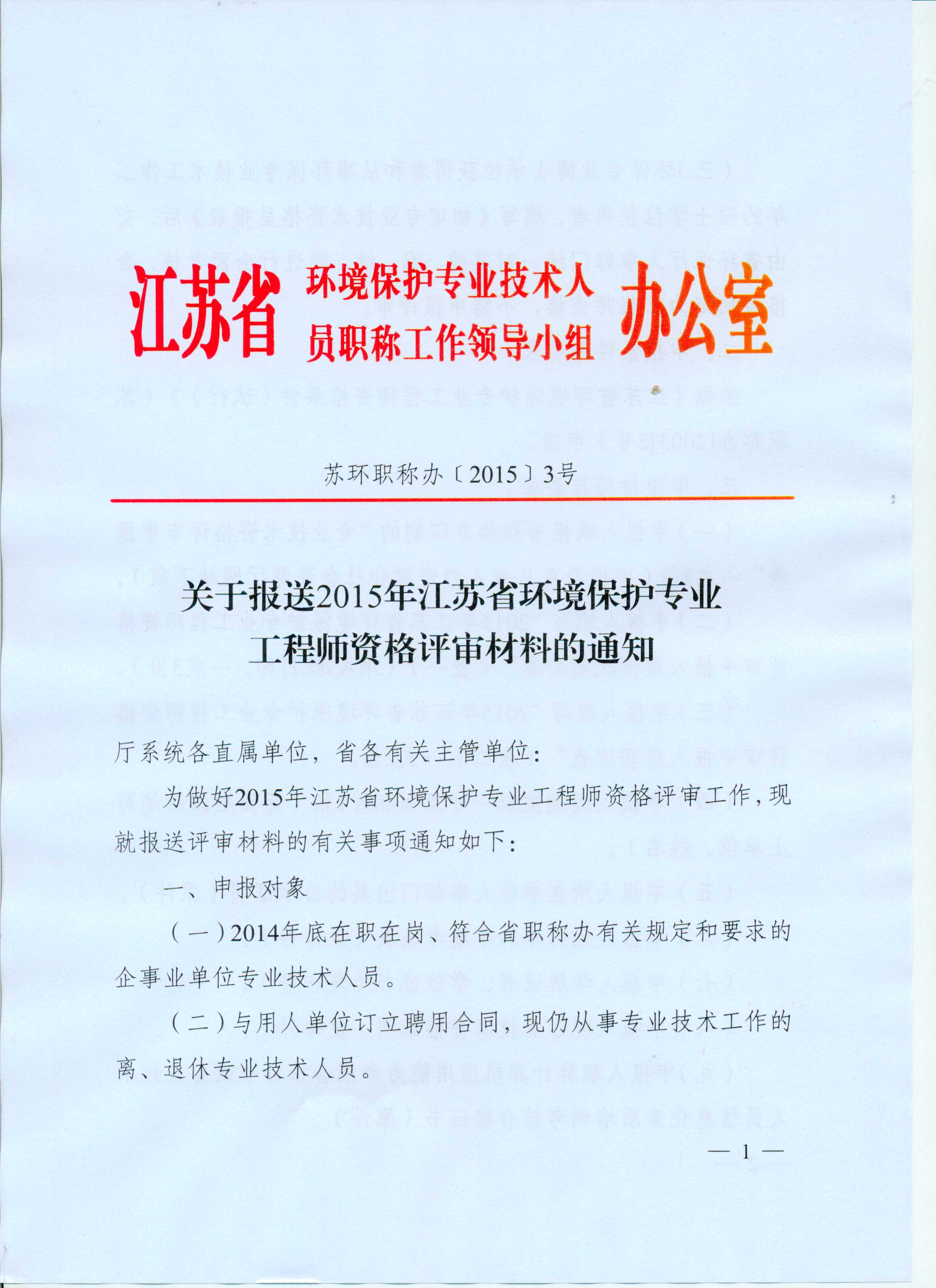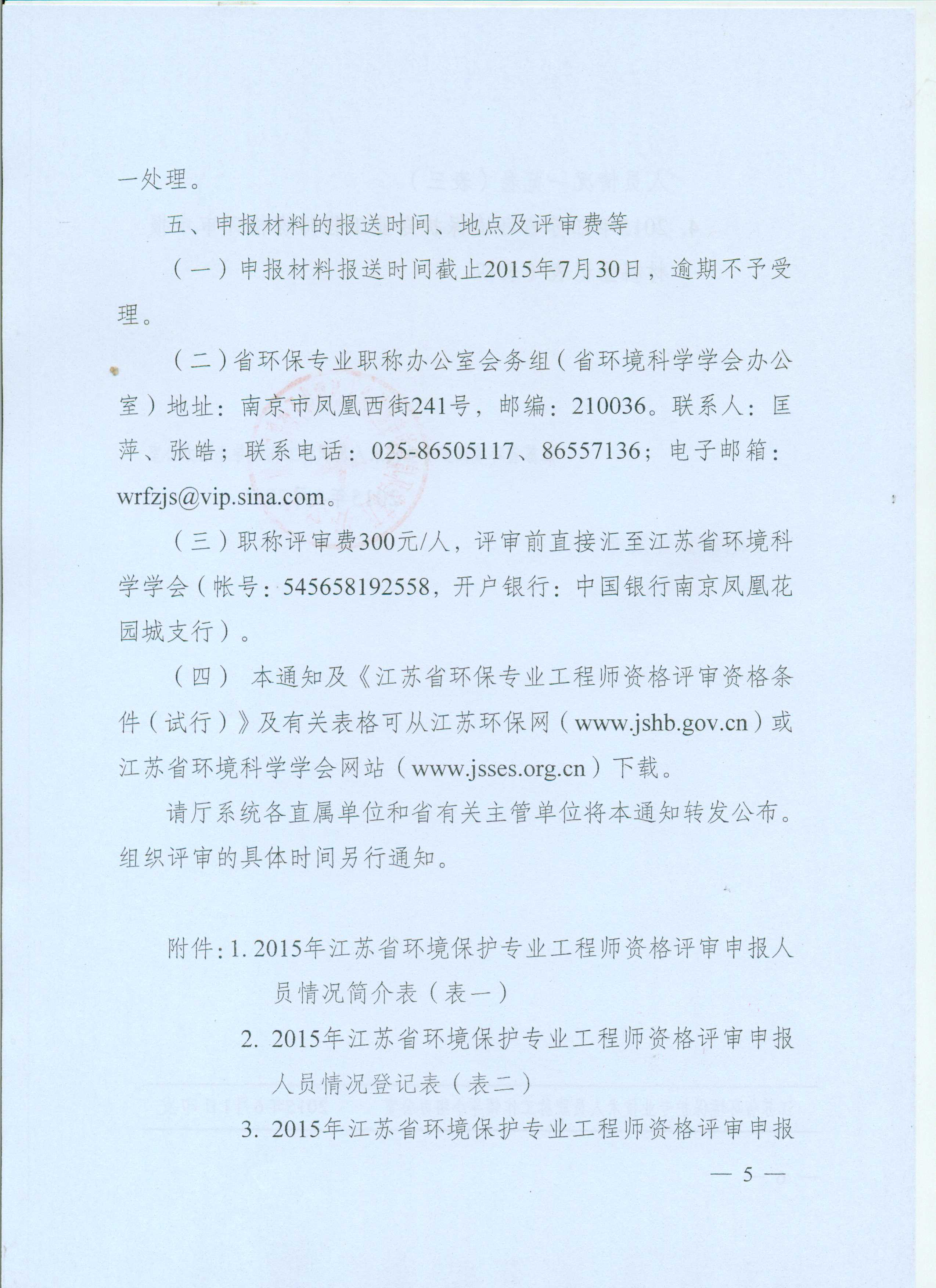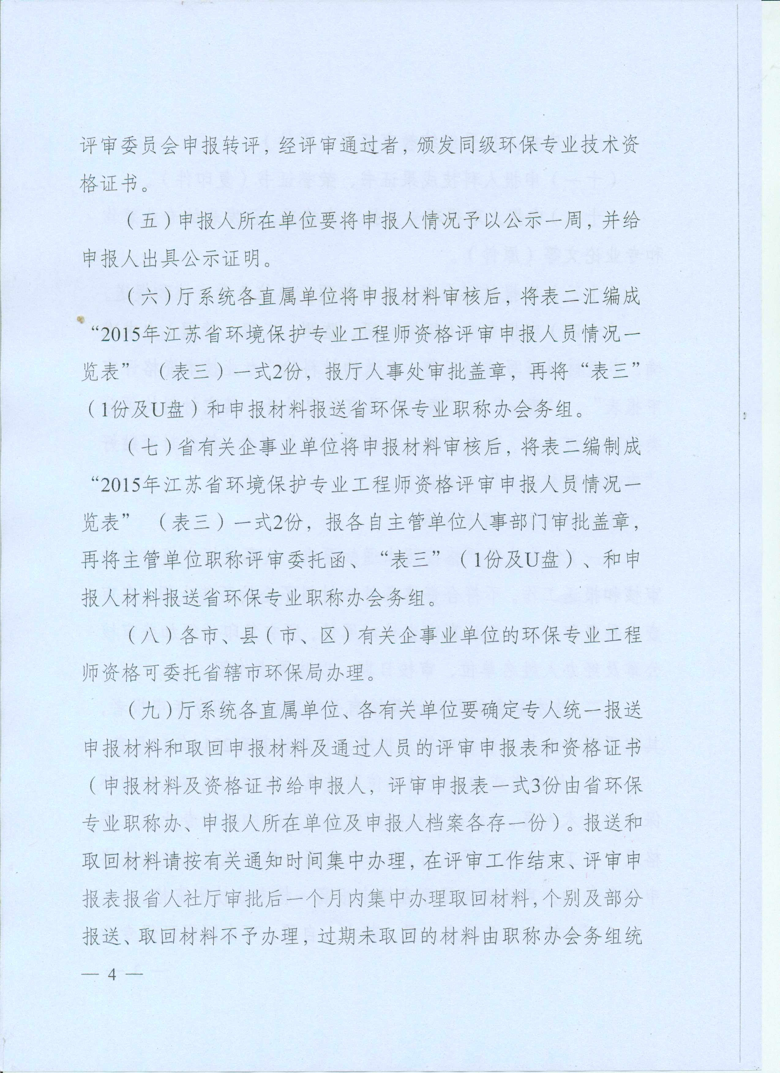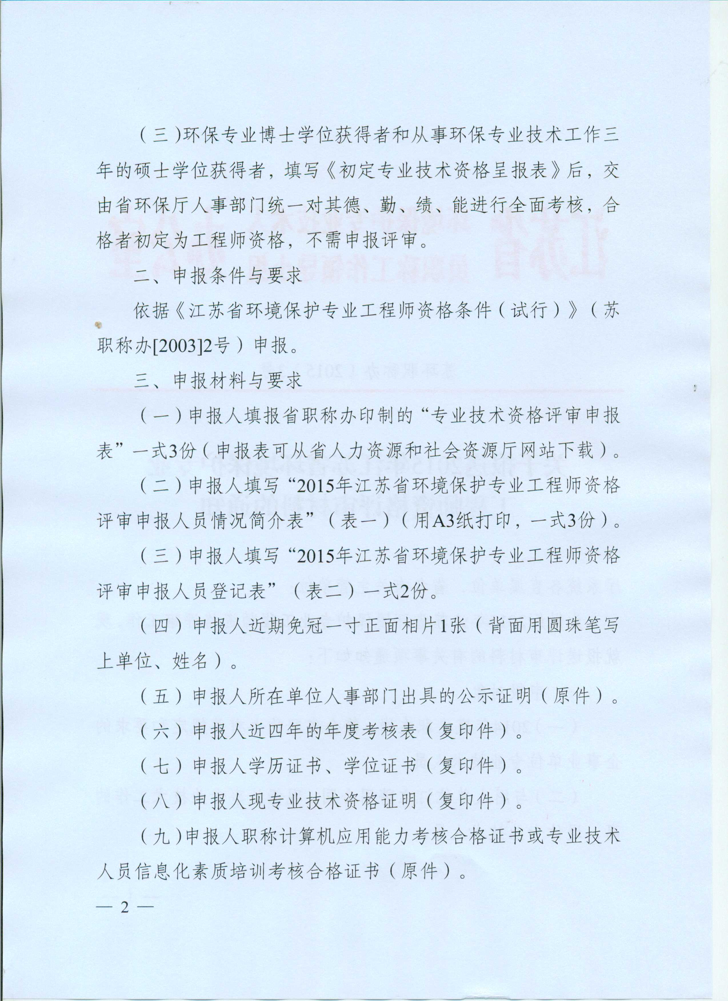 关于报送2015年江苏省环境保护专业工程师资格评审材料的通知