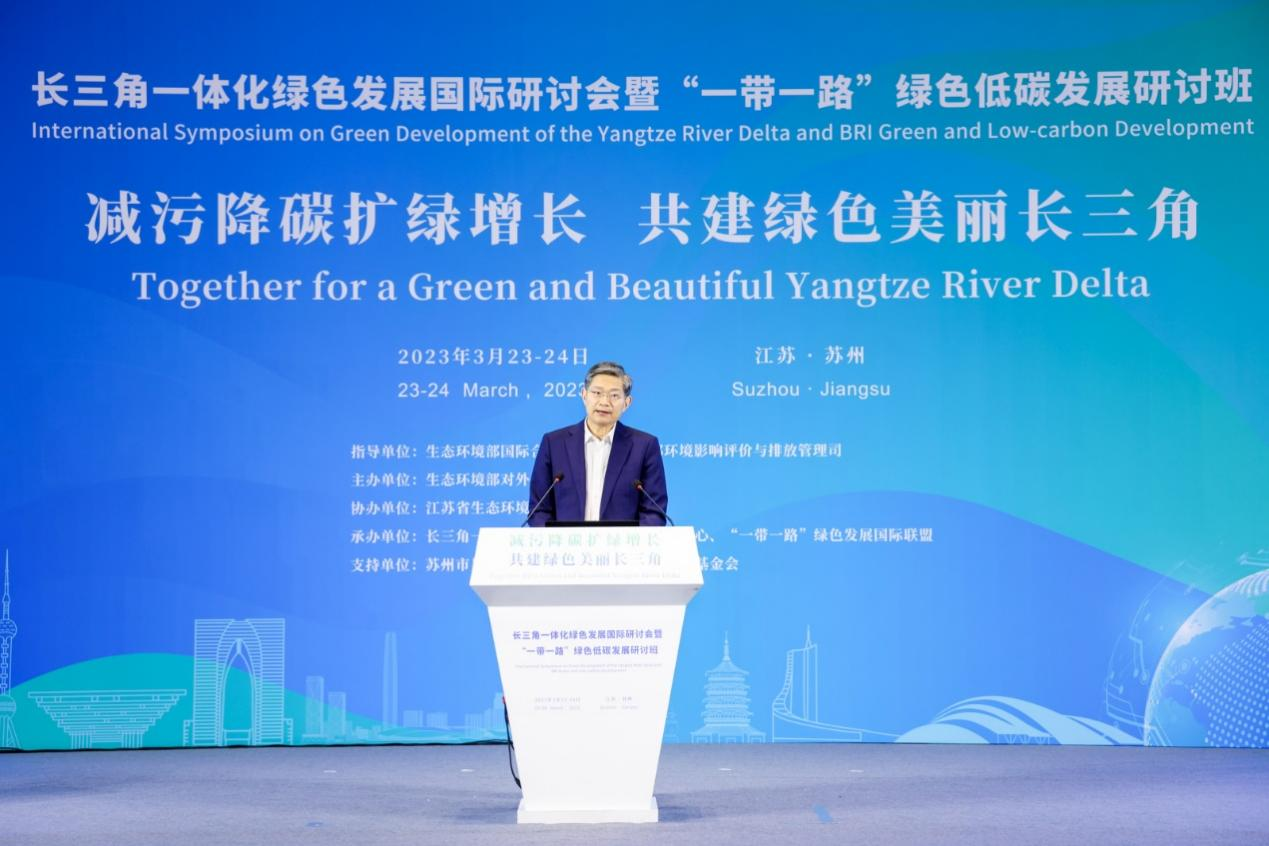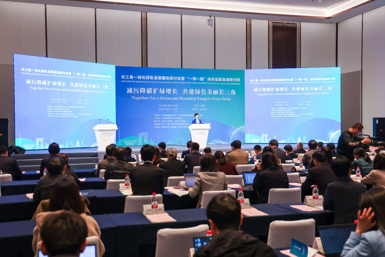 在长三角一体化发展战略上升为国家战略的第五个年头,2023年3月23日,由生态环境部对外合作与交流中心主办,省生态环境厅、苏州市生态环境局协办的“长三角一体化绿色发展国际研讨会暨‘一带一路’绿色低碳发展研讨班”在苏州市吴江区召开,围绕“减污降碳扩绿增长 共建绿色美丽长三角”主题开展系列专题研讨。生态环境部国际司司长周国梅,部综合司督查专员、一级巡视员凌江,部环评司副司长汪键、部对外合作与交流中心张玉军、省生态环境厅副厅长周富章、苏州市政府副秘书长蒋华、北京陈江和公益基金会秘书长伍伟出席大会并致辞。来自长三角地区生态环境系统、国际组织、非政府组织、科研机构等中外专家、学者、企业代表共150余人齐聚一堂,共商长三角区域协同发展与绿色转型之路,共谋生物多样性保护及应对气候变化之策。