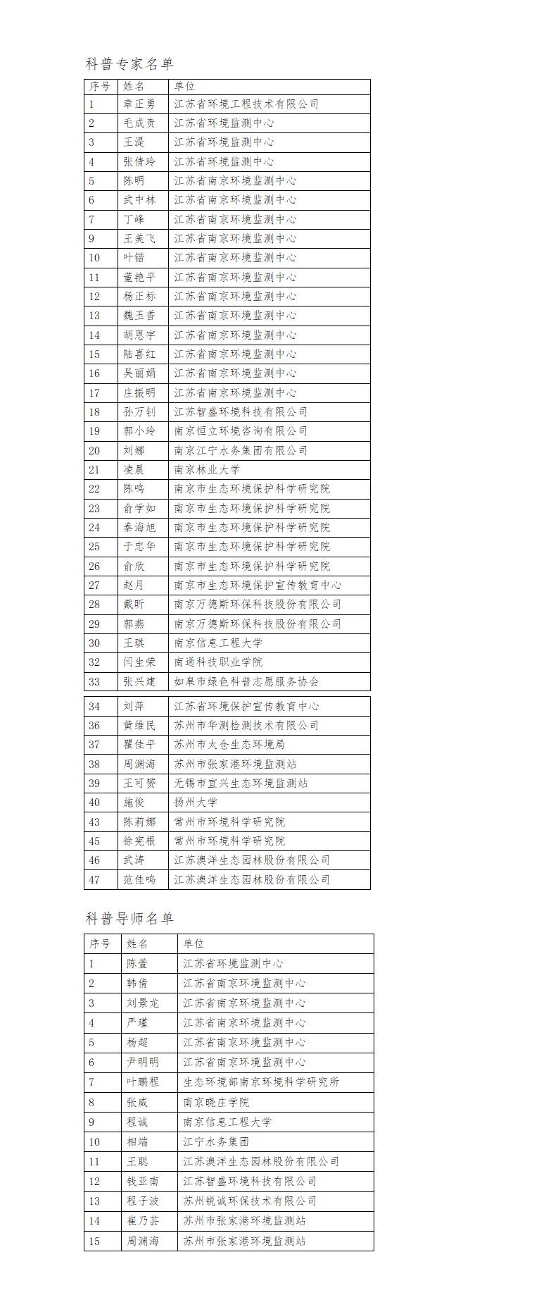 根据《关于建立江苏省环境科学学会生态环境科普专家库和导师库的通知》(苏环学〔2022〕11号)有关规定,学会征集生态环境科学传播普及专家和导师完毕,现将名单予以公示。