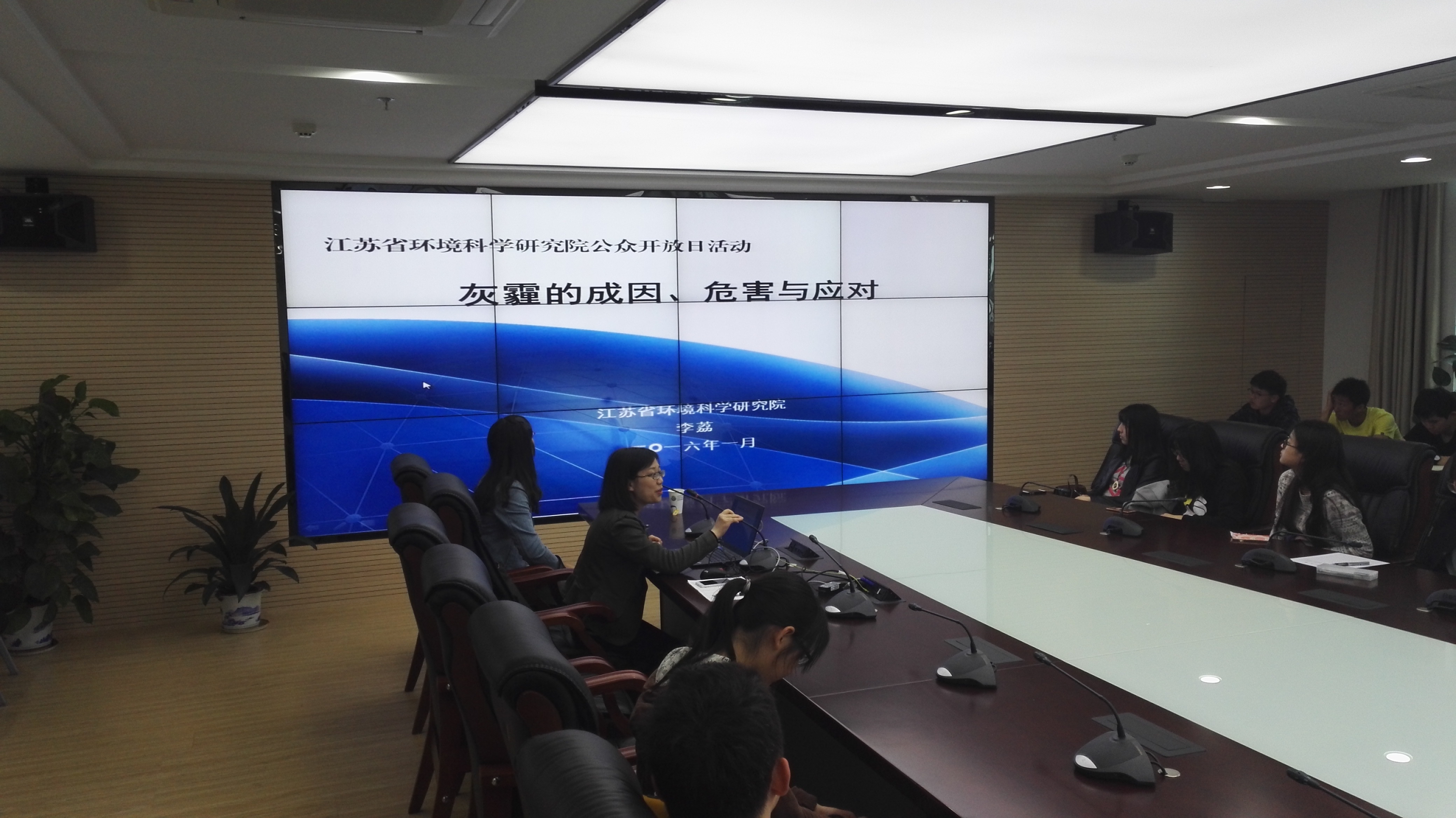 本次活动学会专门邀请了省环科院大气环境研究所的李荔老师和土壤所的蔡安娟老师为同学进行相关专业方面的专题报告,两位专家分别就灰霾的形成机理、危害与大气污染防治和土壤污染修复技术知识为学生们进行了深入浅出的讲解,同学也纷纷就学业中所遇到的问题向专家提出了咨询。随后,学会还组织同学参观了江苏省生态环保体验中心,省宣教中心王园老师带领学生参观了美丽江苏意向序厅、自然生态、大气环境及土壤与辐射环境等主题展区,观看了4D环保科普电影宣传片。