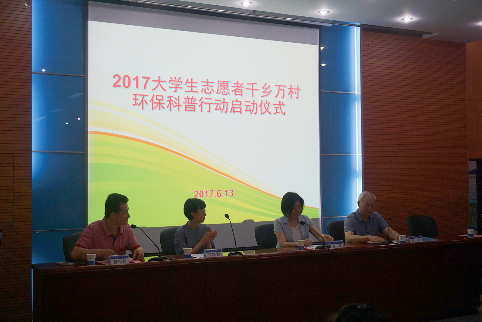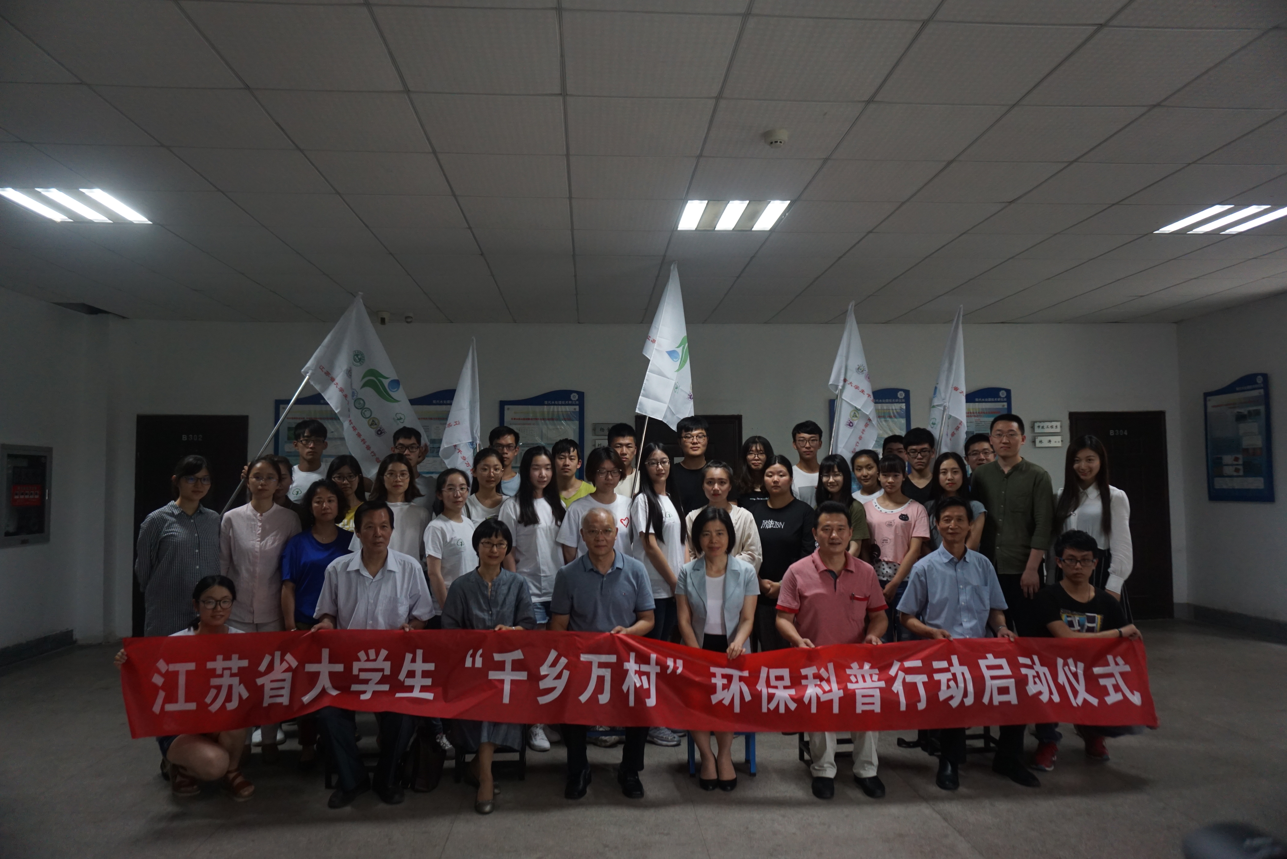 6月13日下午,2017年江苏省大学生志愿者千乡万村环保科普行动启动仪式在河海大学召开,河海大学校党委副书记孟新、省环境科学学会副理事长兼秘书长刘一帆、省环保厅宣教中心副主任范晓黎、河海大学环境学院党委副书记曹松祥出席会议并讲话,参与本次活动的100余名大学生志愿者参加启动仪式。