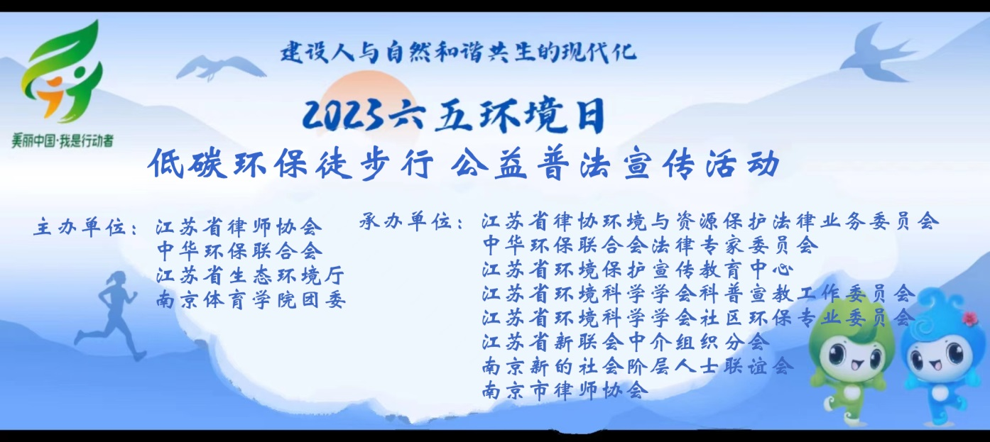 本次活动由江苏省律师协会、中华环保联合会、江苏省生态环境厅、南京体育学院团委共同主办,由江苏省律协环境与资源保护法律业务委员会、中华环保联合会法律专家委员会、江苏省环境保护宣传教育中心、江苏省环境科学学会科普宣教工作委员会、江苏省环境科学学会社区环保专业委员会、江苏省新联会中介组织分会、南京新的社会阶层人士联谊会、南京市律师协会共同承办。