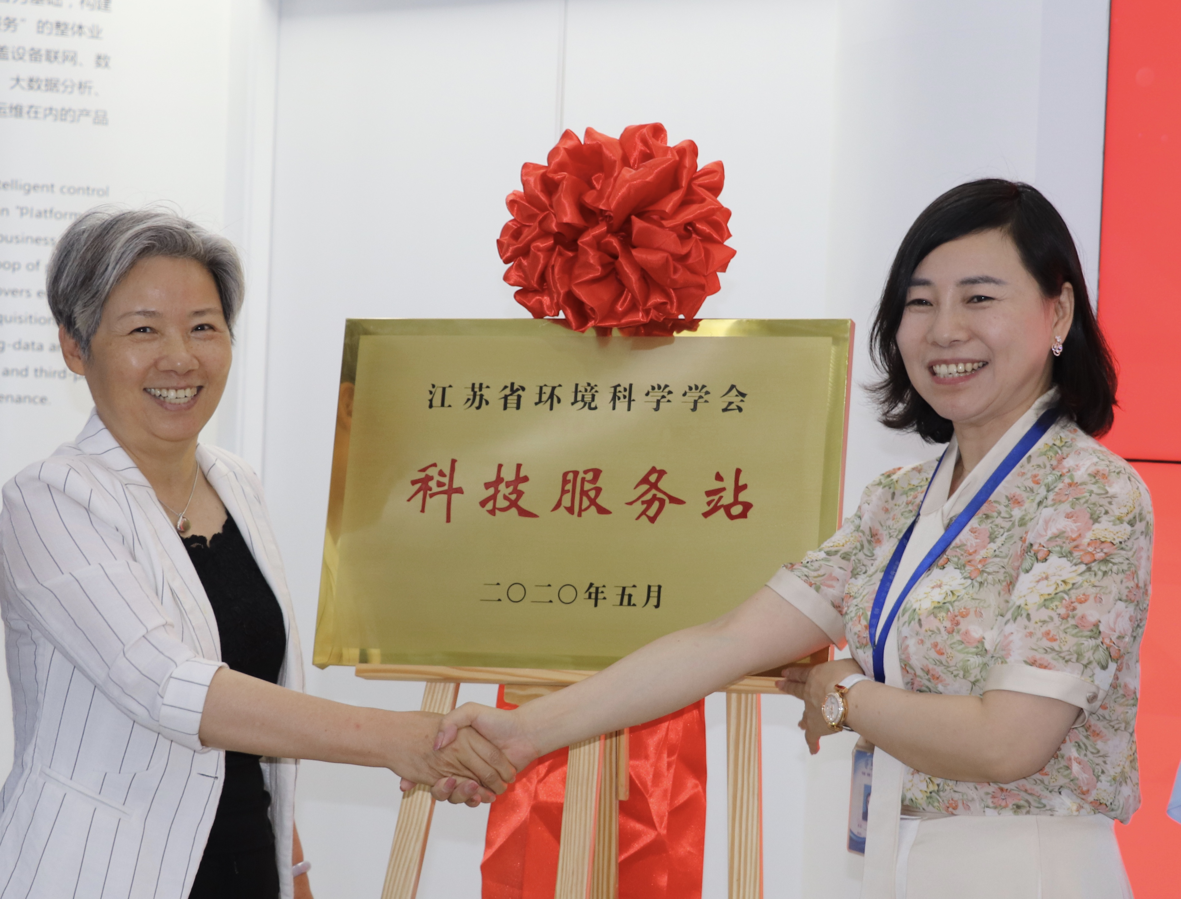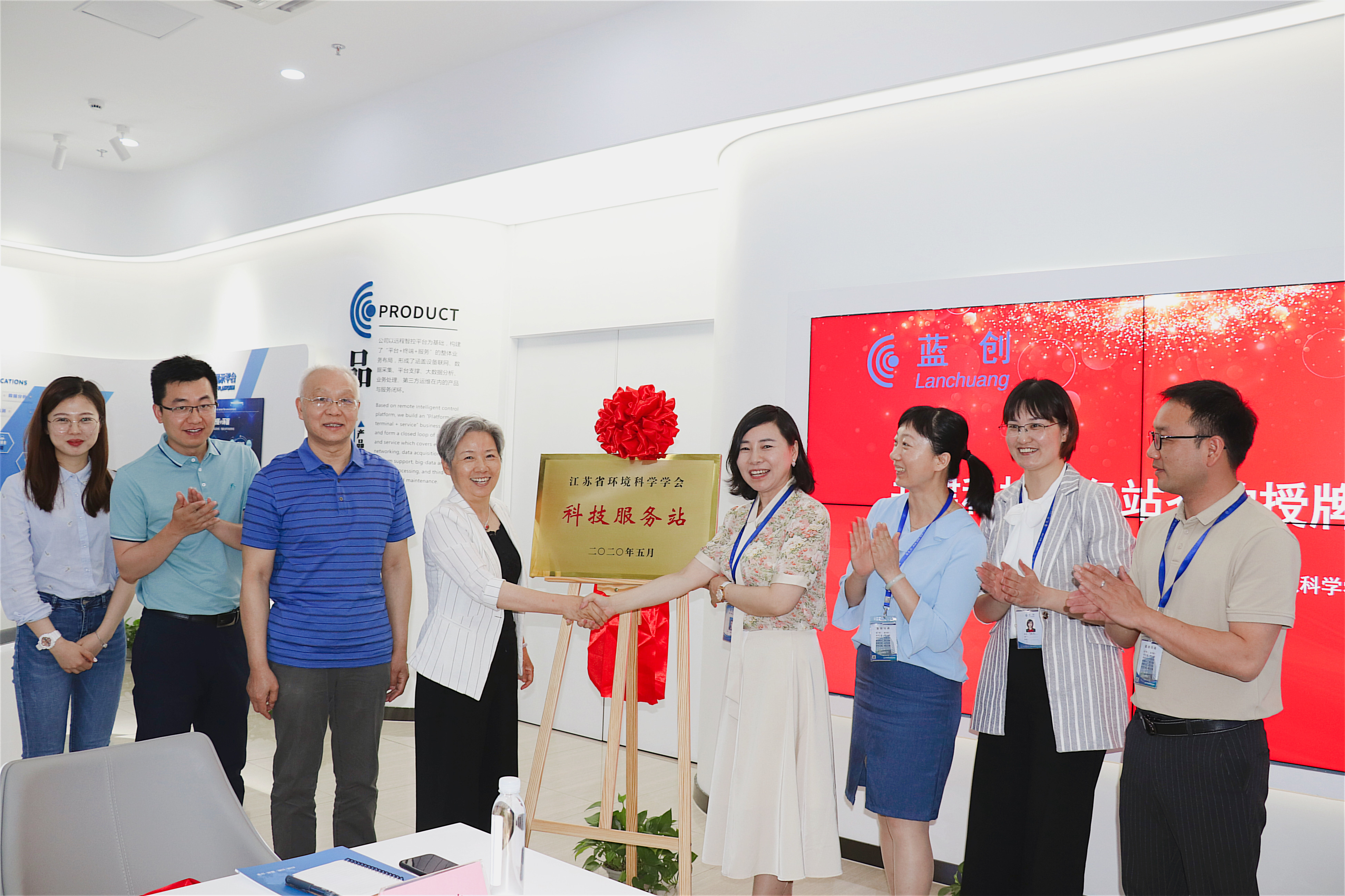 5月25日,江苏蓝创智能科技股份有限公司(以下简称“蓝创智能”)与江苏省环境科学学会举行“科技服务站”签约授牌仪式,江苏省环境科学学会理事长刘建琳、常务副理事长刘一帆一行,蓝创智能董事长黄红娟、副总裁丁亚云、副总裁赵婵娟、副总裁蔡宁吉出席仪式。