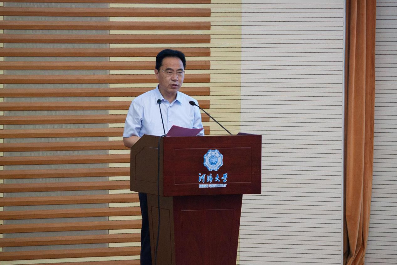 郭继超在致辞中指出“大学生在行动”生态环境科普活动的开展响应了习近平总书记生态文明建设的号召,自“活动开展以来,河海大学师生一直积极参与,大学生志愿者们充分发挥专业优势,深入乡村、社区等,开展了一系列形式多样、内容丰富的环保科普活动,促进农村农民、社会居民进一步提高环境保护意识。